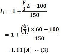 そのため、(3)式ではI1=1.13[A]となりましたが、これは2[A]未満であるため、実際にはI1=2[A]として取り扱う必要があります。