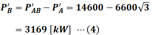 調整前の負荷は各7300[kW]なので、負荷の合計PABは7300×2=14600[kW]です。よって、調整後の負荷の合計P’ABも14600[kW]となります。