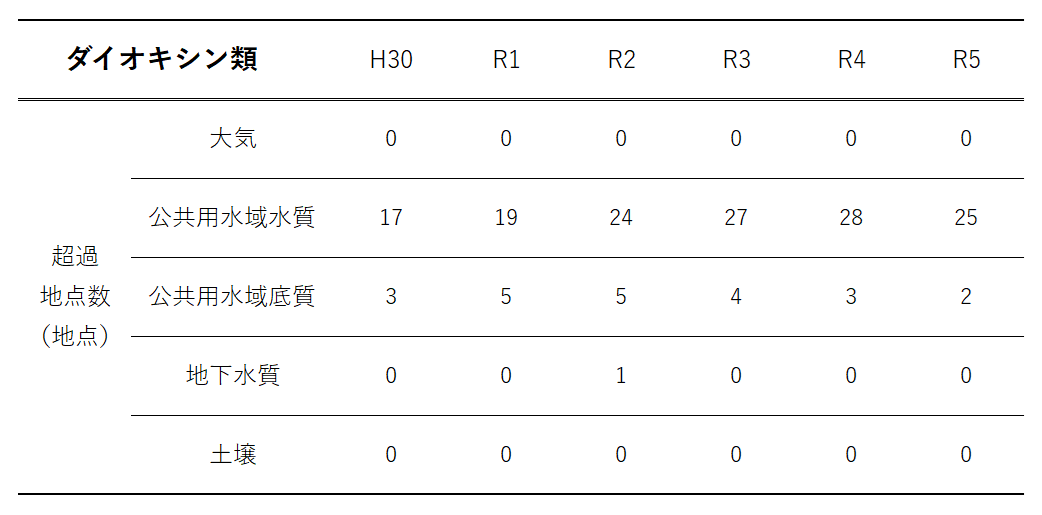 環境基準 超過地点数