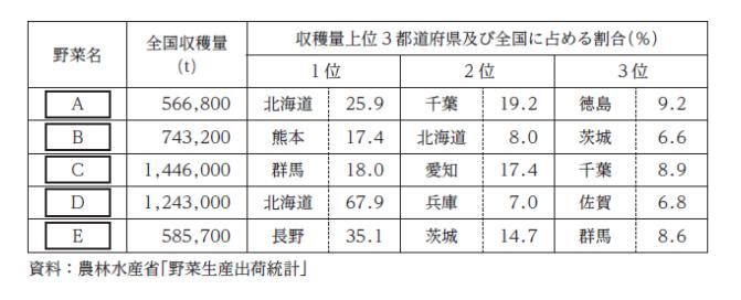 C:1 位が群馬 → 嬬恋を連想してキャベツ