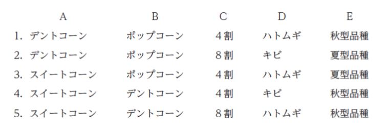 次は、トウモロコシ及び雑穀についての特徴や生産に関する記述であるが、A~Eに当てはまるものの組合せとして最も妥当なのはどれか。