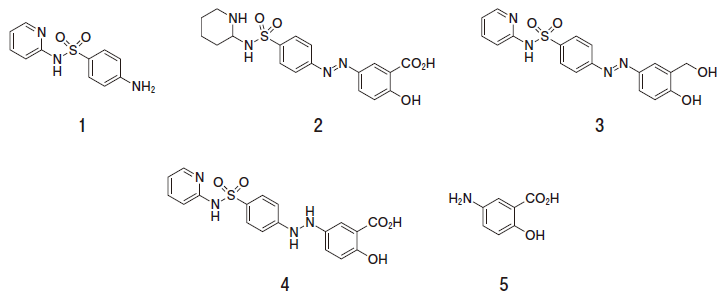 全大腸炎型潰瘍性大腸炎に有効な主たる活性成分の構造はどれか。1 つ選べ。