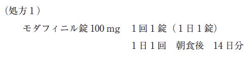 モダフィニルの増量中に、「眠りにつくときに怖い夢ばかりみる」との訴えがあったため、処方 2 が追加された。その後も居眠り等の症状が十分に改善されなかったため、モダフィニル錠は、処方 3 に変更された。
