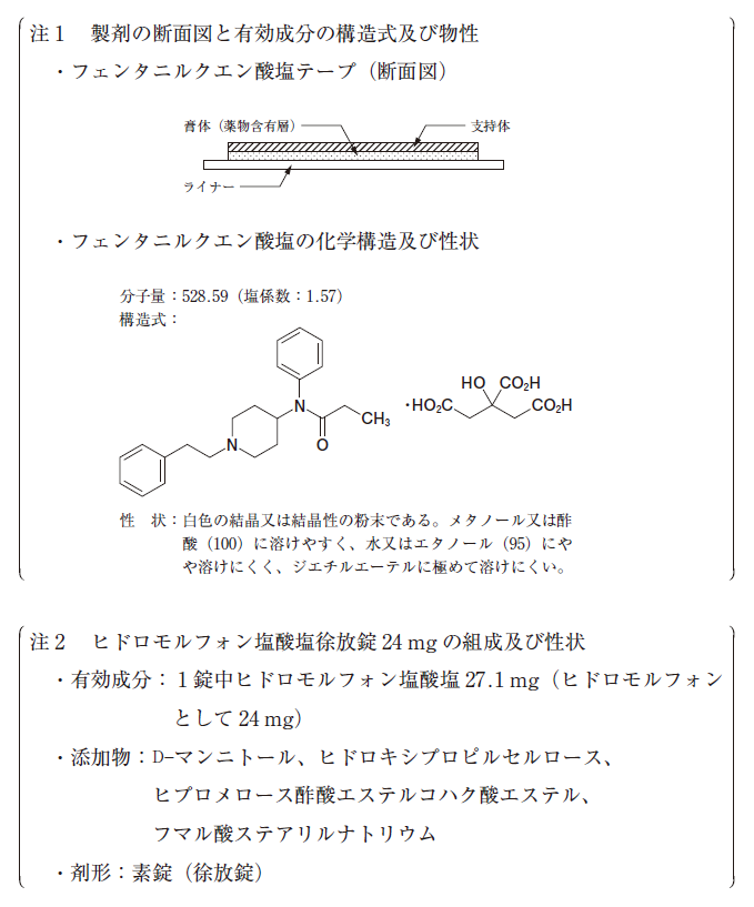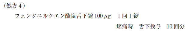 1. 処方 2 の薬剤に比べ作用の発現が速いので、突出痛に対し迅速に対応できる。