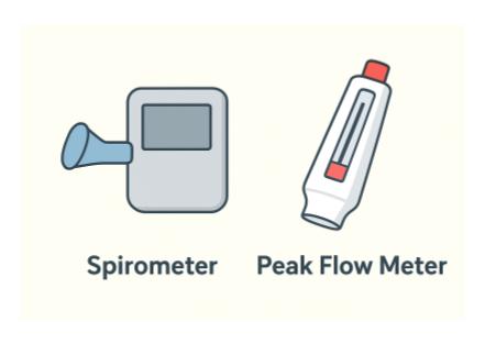 ピークフローメーターは、スパイロメーターの簡易版と考えるとよいです。共に呼吸機能検査に用いられます。イメージは以下の通りです。