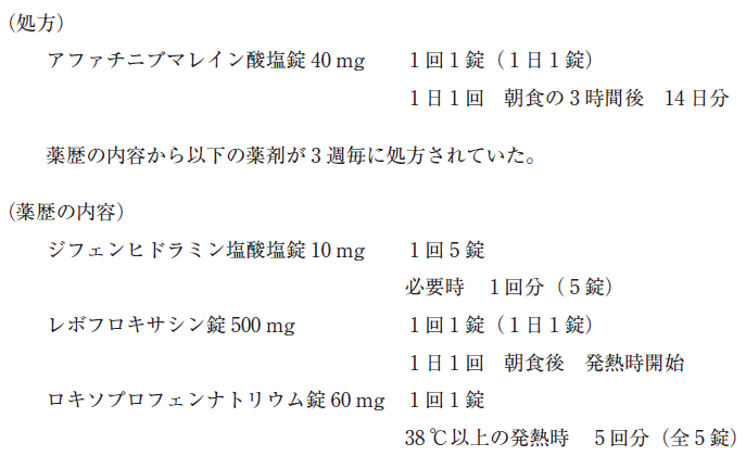 - 今回の処方薬は、化学療法施行後に開始された薬剤である。